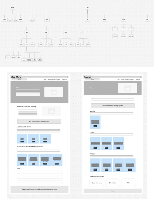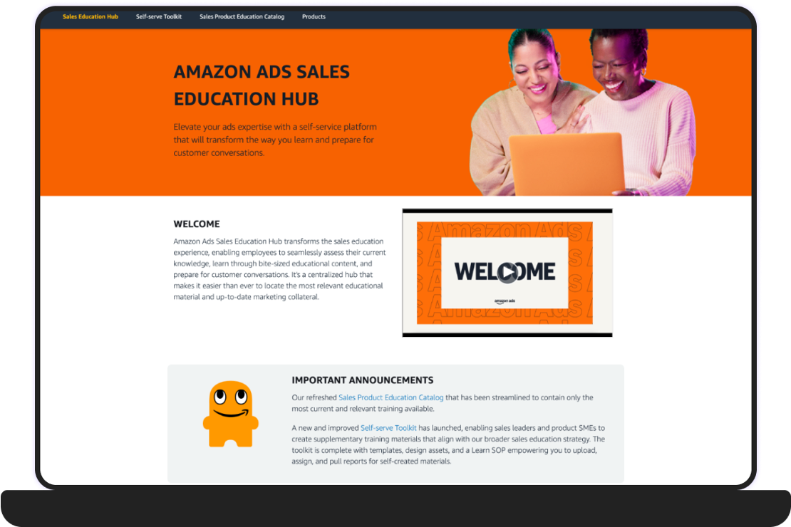 Sales teams across Amazon Ads were struggling to find and access relevant product training and enablement materials. Content was scattered across multiple systems, lacked clarity in structure, and didn’t reflect the end-to-end journey sales reps go through when preparing for customer conversations. The goal was to design a centralized, intuitive hub that made it easy for global teams to access learning paths, marketing collateral, and training tools in one place.