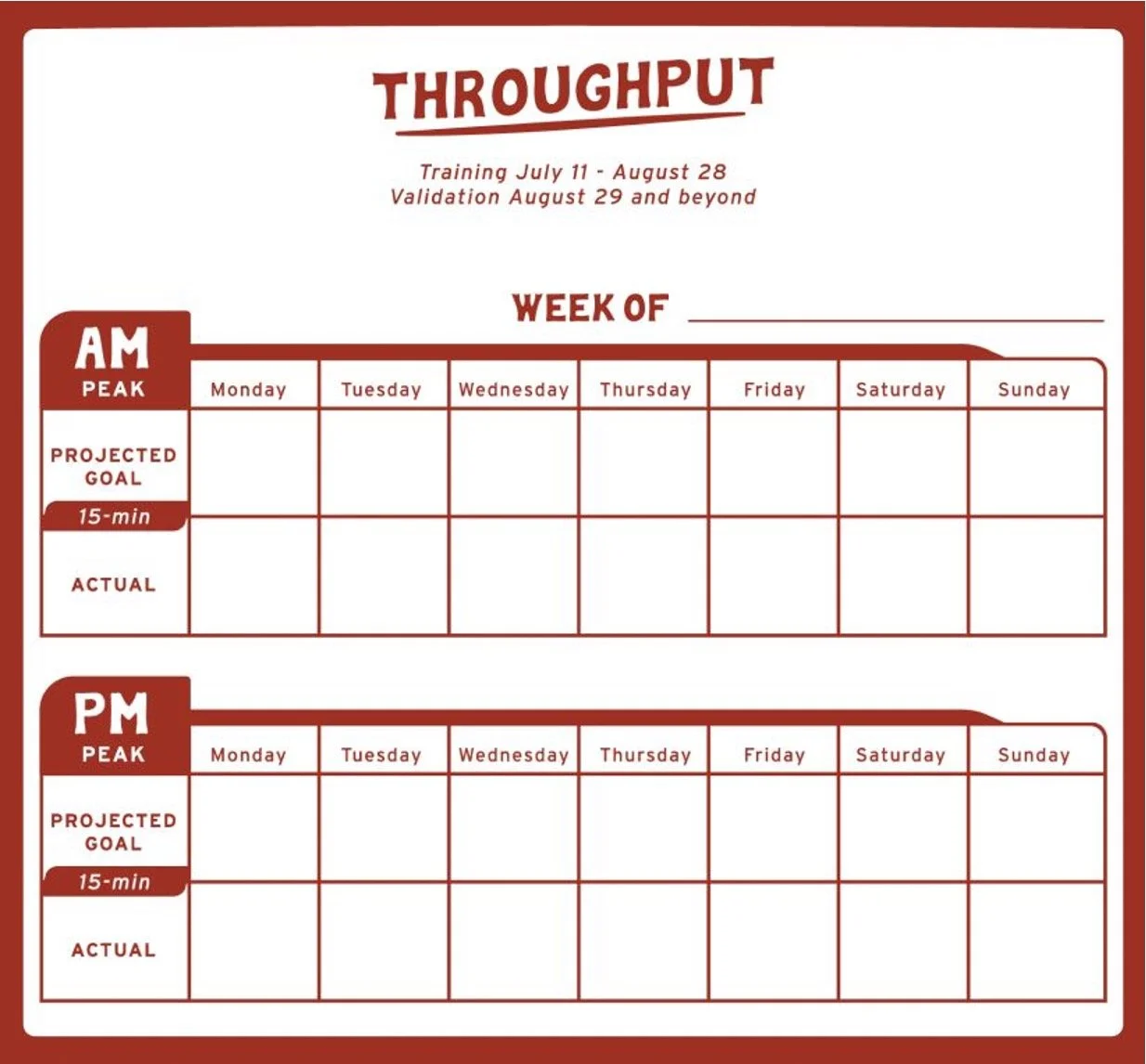 Post-COVID, senior leadership felt that restaurant teams had lost key operational fundamentals. The ask was vague—'get us back to basics'—and our team was asked to move quickly, starting with throughput. This is measured by entrees made per 15 minutes (EP15M), and teams were underperforming during peak hours. The goal was to design a scalable training program for 100,000+ crew members that would improve speed and accuracy without disrupting restaurant flow or requiring extensive time off the floor.