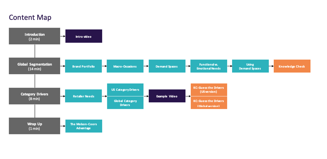 Molson Coors needed to educate sales teams on their updated customer segmentation framework, but wanted the training to go beyond a traditional presentation. The material had to feel relevant, be visually branded, and reflect real-world challenges sellers faced when choosing products for different accounts. The goal was to create an engaging training experience that helped sales reps understand and retain customer segment types—and apply that knowledge in daily decision-making.